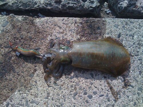 あの餌木たちを仕入れてから、ちょっとずつ釣果が上がって来ました!! 400g位かな。 何回か餌木を追ってきては離れての繰り返しで、いい加減嫌気が差して少し離れた場所に移動しました。 戻る時に同じ場所で投げてみたら、同じ餌木だったのですが釣れてしま…